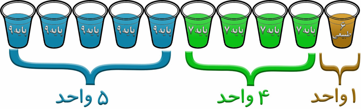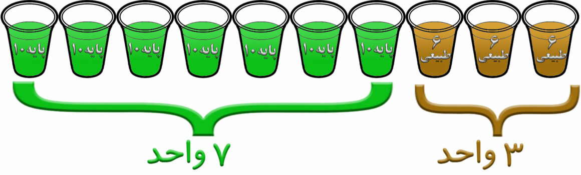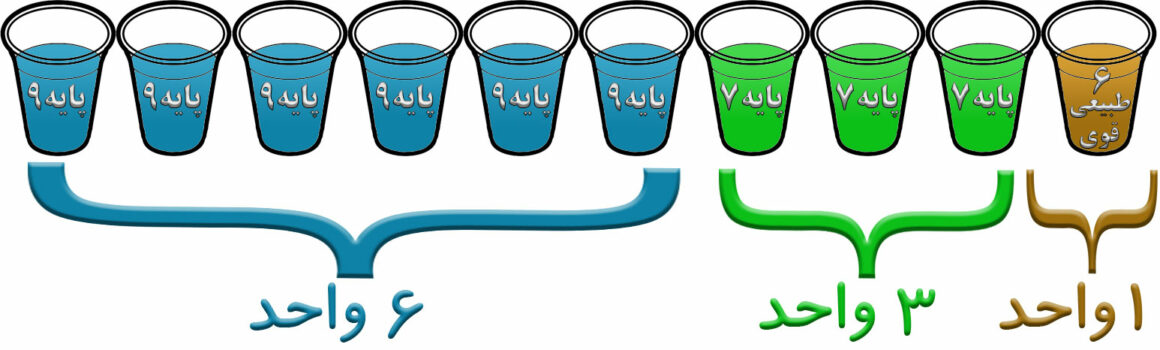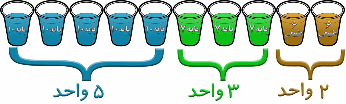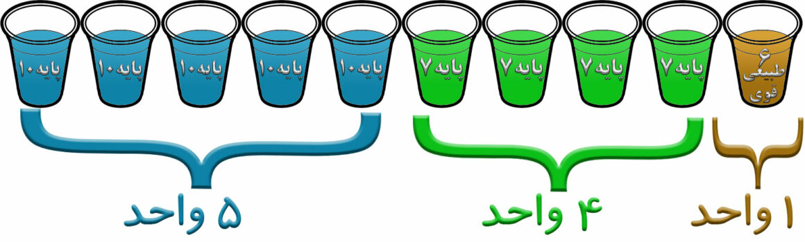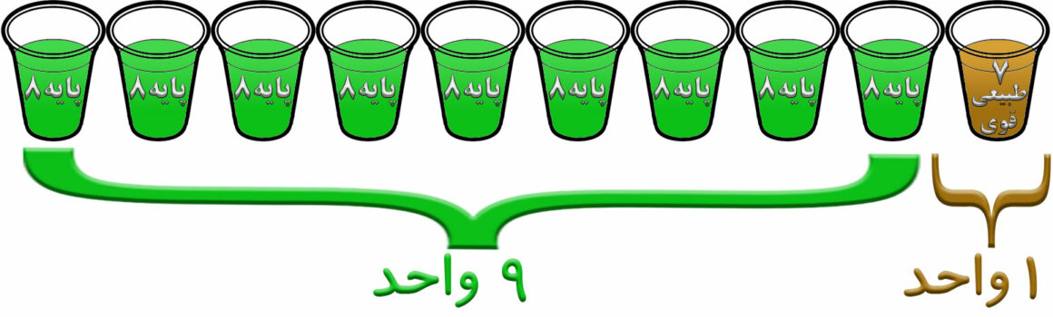 به فرض اینکه شما می خواهید از کل 10 واحد بالا رنگی در پایه 8 داشته باشید، لذا می بایست دو رنگ اصلی با پایه 7 و 9 و با تناژ دلخواهتان خریداری نمایید.