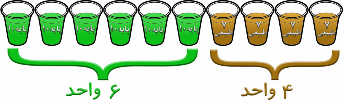 مثال: می آییم این میزان را به صورت چشمی یا از روی تیوپ رنگ تقسیم بر 10 می کنیم.